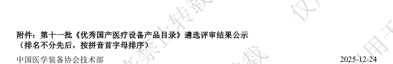 The selection process for the Excellent Domestic Medical Equipment Product Catalog is organized by the China Association of Medical Equipment, a national-level industry organization. Upholding the principles of “objectivity, fairness, and professionalism,” it involves clinical experts, technical experts, and others in a comprehensive, multi-dimensional, and multi-stage review. This includes rigorous enterprise research, product technical evaluations, and clinical application assessments, resulting in an authoritative recommended directory.